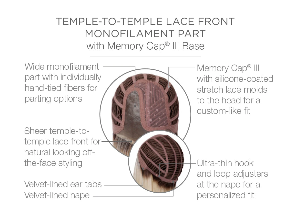 Memory Cap® III with silicone-coated stretch lace molds to the head for a custom-like fit.