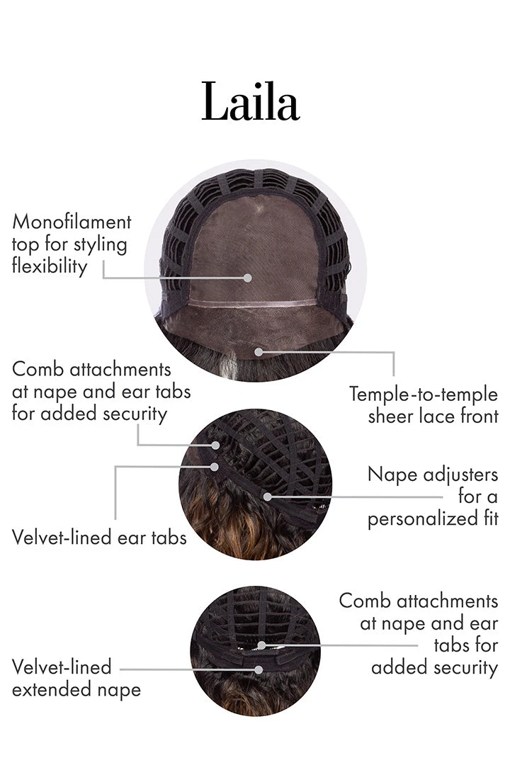 “Ultra-long, ultra-glam, LAILA exudes top-model energy with soft, mermaid waves that fall to mid-back. Her full monofilament top makes the look flawless from every angle and allows you to part wherever you like. Flat iron smooth for a new take on her angelic aesthetic.