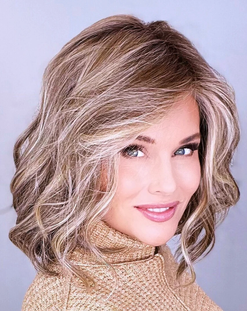 Simmer Wig by Raquel Welch is this light and airy style and is an easy-to-wear mid-length “lob”. Gentle, unstructured waves and tapered ends make this the perfect undone, chic look.